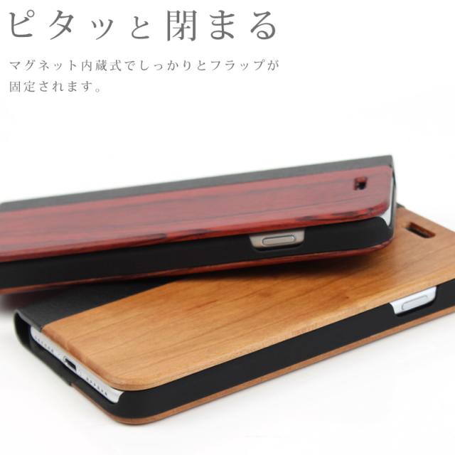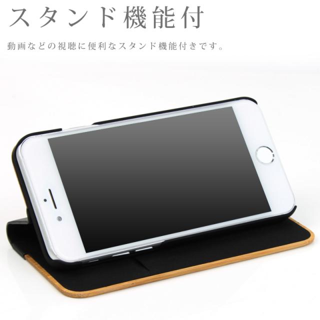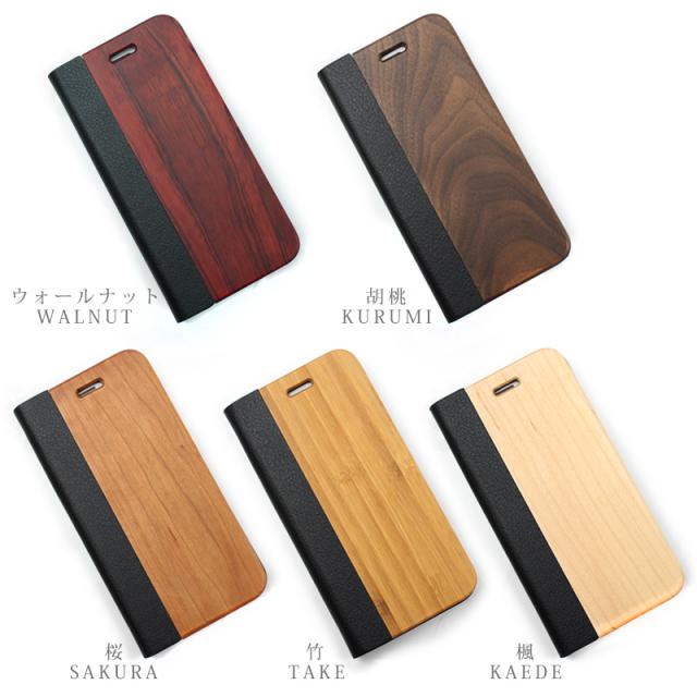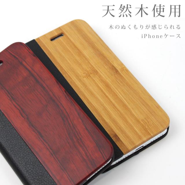 木のぬくもりが感じられる天然木とレザー風素材を組み合わせたiPhone手帳型ケースです。