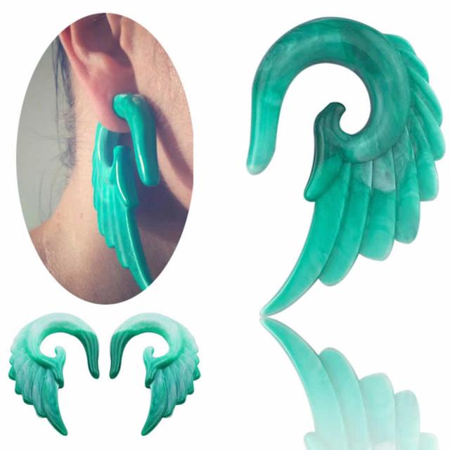 [8G 6G 4G 2G 0G 00G 12mm ボディピアス] グリーンマーブルアクリルウイング 1個販売 メンズ レディース 緑色 金属アレルギー対応 8ゲージ 6ゲージ 4ゲージ 2ゲージ 0ゲージ 00ゲージ 12.0mm 拡張器 インサーションテーパー 翼 ウイング 羽根 天然石風 ターコイズ風