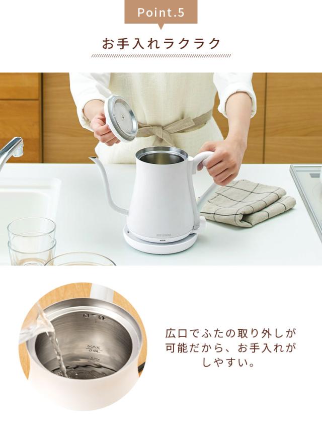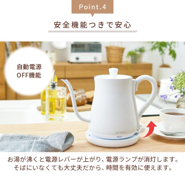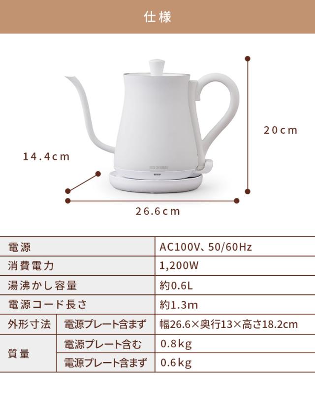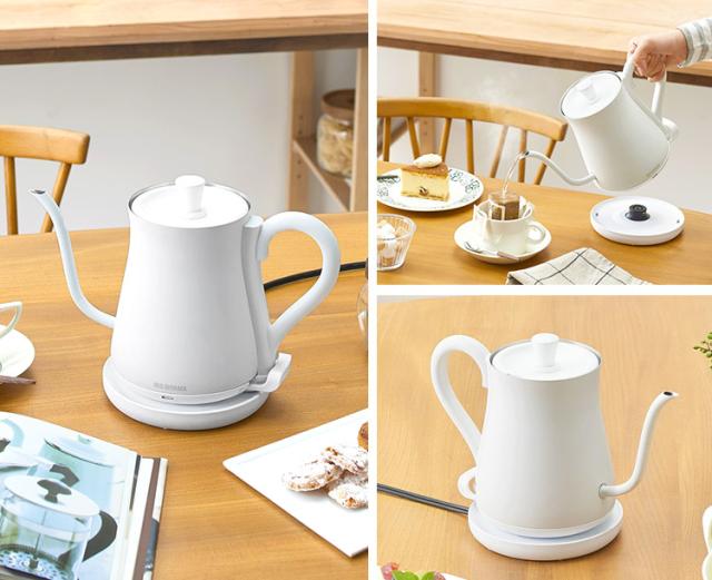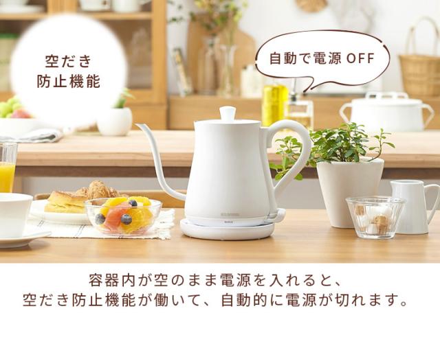 【節電対策】アイリスオーヤマ 電気ケトル ドリップケトル 600ml アンティーク調 ホワイト IKE-C600-W 安心延長保証対象
