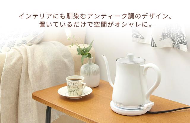 インテリアにも馴染むアンティーク調のデザインの電気ケトルです。