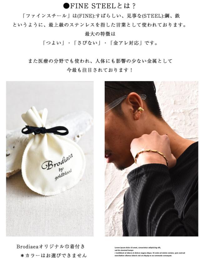 Brodiaea(ブローディア) finesteel チェーンブレスレット【FINE STEEL】ライン●デザインポイントお洒落なデザインで機能性もある、コスパ最高のファインスティールライン使ってみてその良さを感じられます。弓矢の矢じりからインスパイアされた独特なカッティングのチェーンが登場。ファインスチール製なので軽くて丈夫な作りになっており、汗や水にも耐性があります。サラッとメタル時計と合わせたり、少し大人な上級上質感を楽しんで!●FINE STEELとは?「ファインスチール」は(FINE):すばらしい、見事な(STEEL):鋼、鉄というように、最上級のステンレスを指した言葉として使われております。