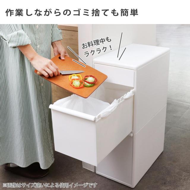 引き出したままでも抜け落ちないので、調理しながらのゴミ捨ても簡単。手が汚れた状態でふたの開け閉めをしなくてよいので、ストレスなく作業ができます。