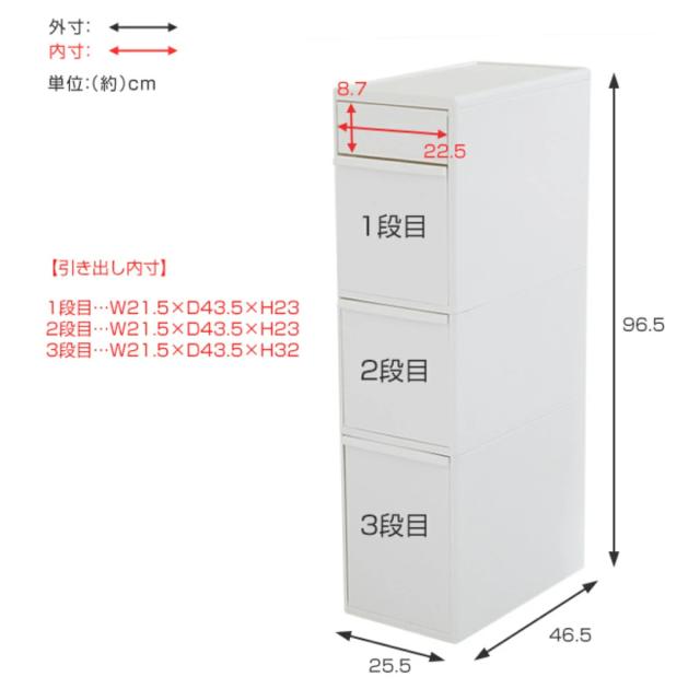 | 引き出し段数 | 3段 |