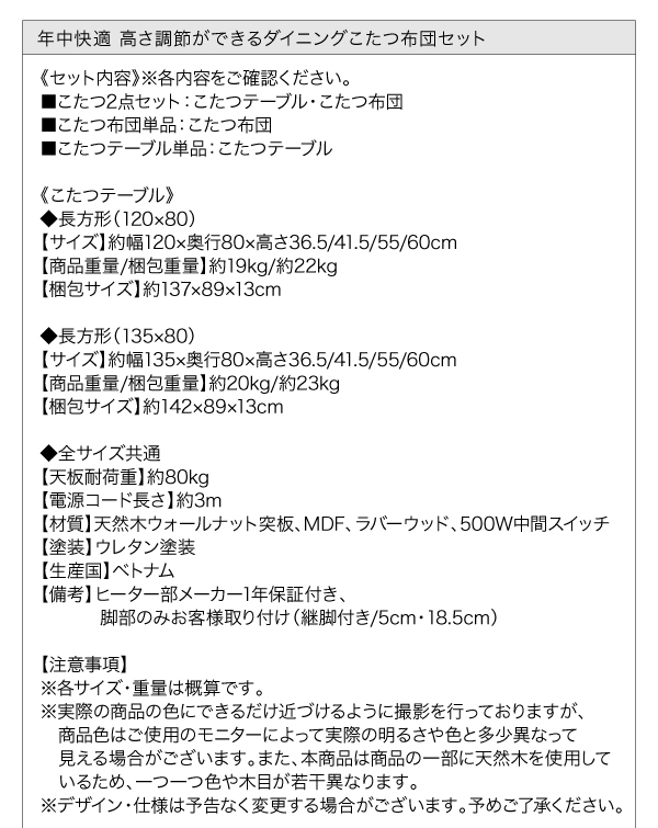 【キーワード】 4段階 高さ調節 ダイニングこたつテーブル 長方形 80×120cm 送料無料 ハイタイプこたつ テーブル 単品 4段階 高さ調節 継ぎ脚 おしゃれ 激安 安い