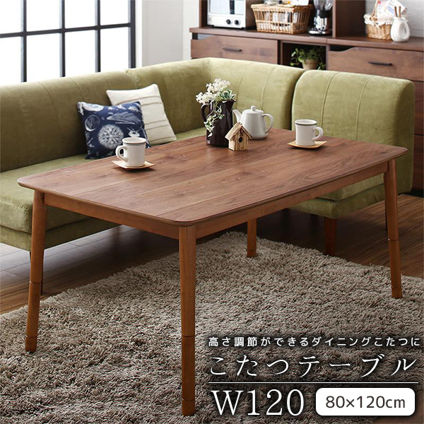 4段階で高さ調節 ダイニングこたつテーブル 長方形 80×120cm 送料無料 ハイタイプこたつ テーブル 単品 4段階 高さ調節 継ぎ脚 おしゃれ 激安 安い
