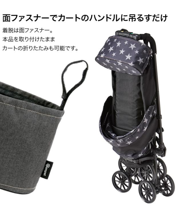 着脱は面ファスナー。本品を取り付けたままカートの折りたたみも可能です。