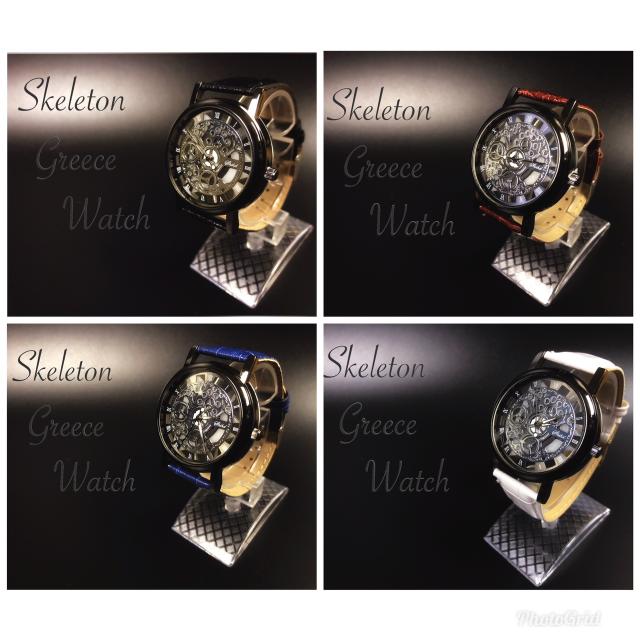 2 腕時計 時計 メンズ ステンレススチール 高品質 レザー 革ベルト アナログ クォーツ ウォッチ ギリシャ文字