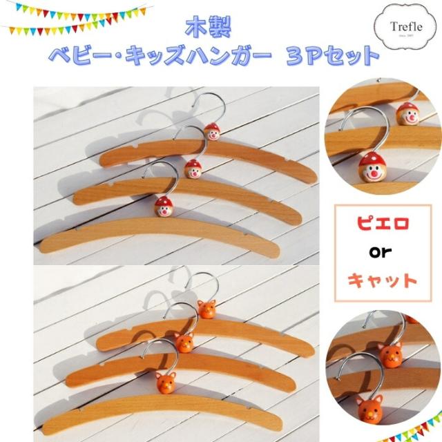 セール 木製ハンガー ウッデン ハンガー 3本 セット 送料無料 (ヤマト運輸 ネコポス)アニマル OR ピエロ 子供用 ペット用 ペットの洋服 木製 ハンガー ポストへお届け