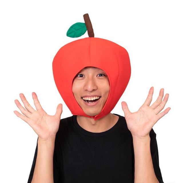 緑の葉っぱがポイントのりんごのかぶりもの。宴会、余興、イベント、ハロウィンなど様々なシーンで活躍します。