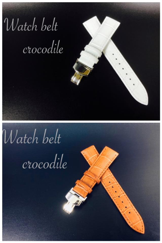 2 時計ベルト メンズ Dバックル カーフ革 クロコダイル型押し 20mm ブラウン ホワイト 革 替えベルト ブランド