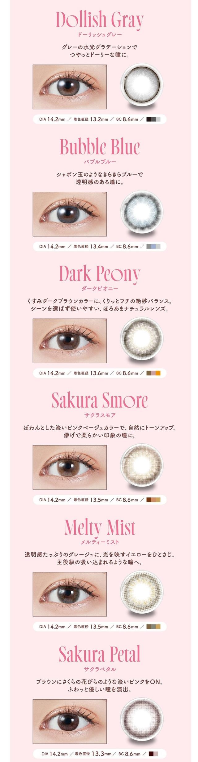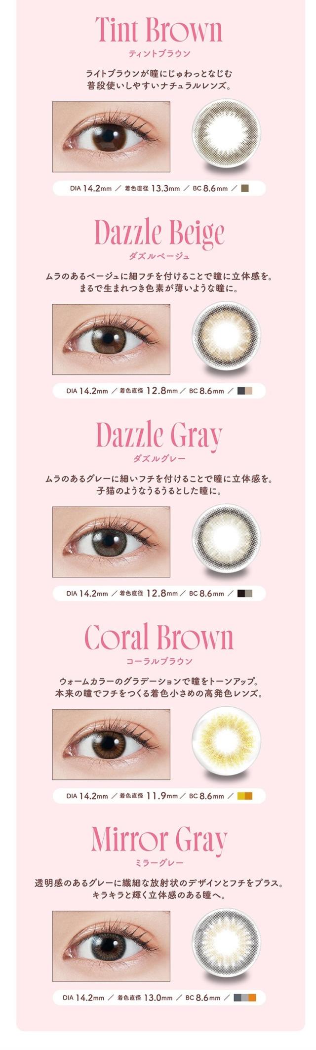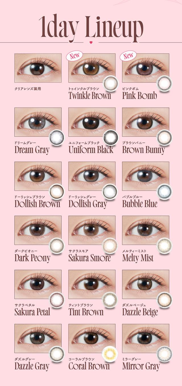 ●販売度数:0.00〜-10.00 ●付属品:レンズ10枚 ●使用期限:1日使い捨て ●承認番号:22900BZX00118000