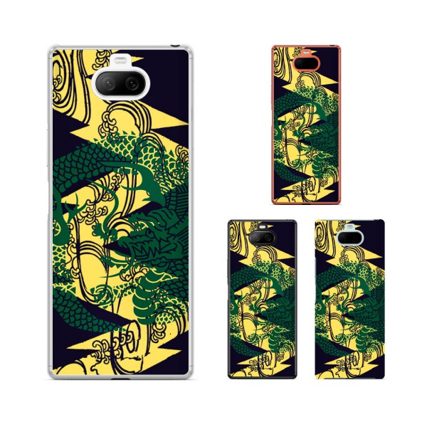 Xpria 8 SOV42 スマホ ケース カバー au Y! mobile 和柄 龍 黒 黄色 緑
