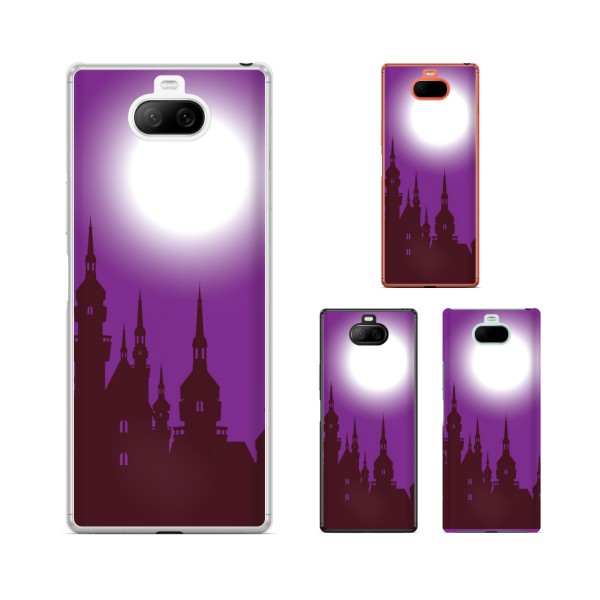 Xpria 8 SOV42 スマホ ケース カバー au Y! mobile 城 白い月 紫