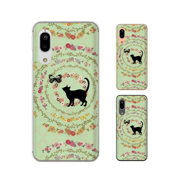AQUOS sense3 lite SH-RM12 スマホ ケース カバー 楽天モバイル 蝶と猫2 花 グリーン