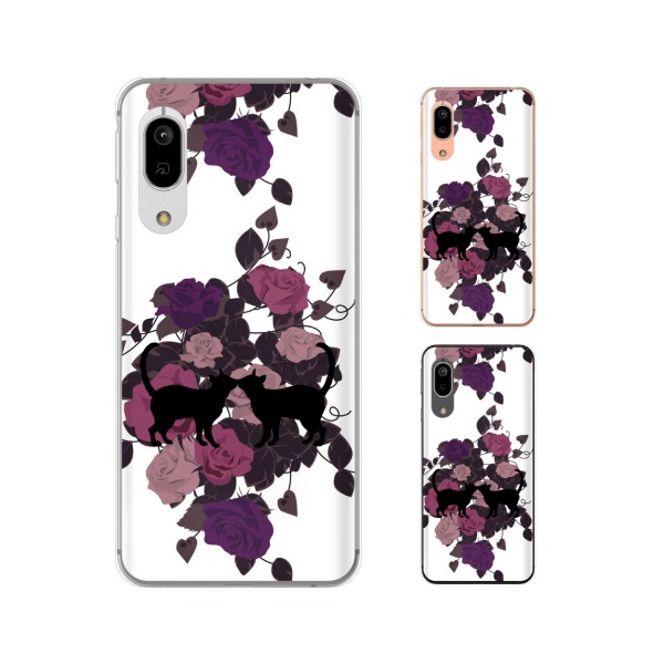 AQUOS sense3 lite SH-RM12 スマホ ケース カバー 楽天モバイル 猫のカップル2 薔薇 白