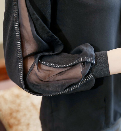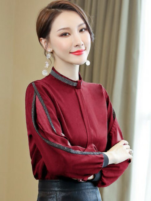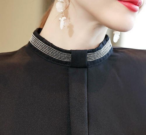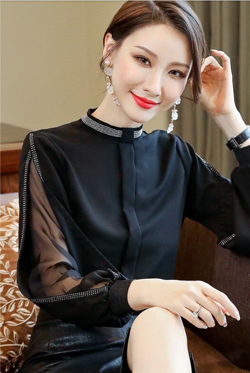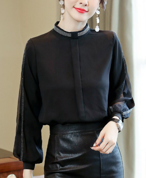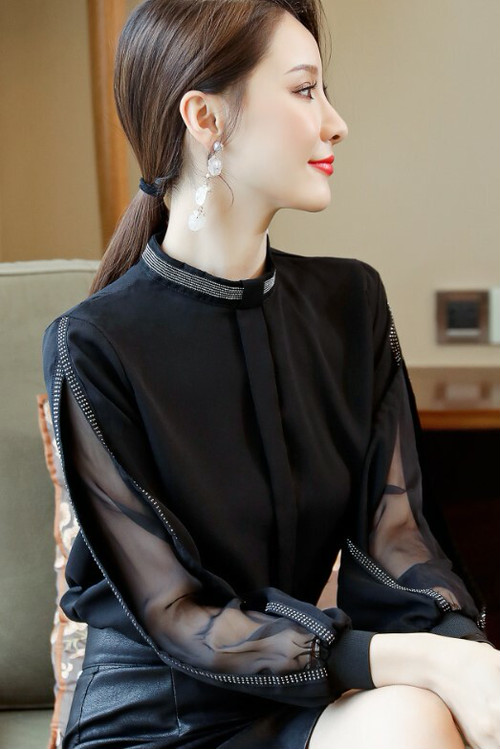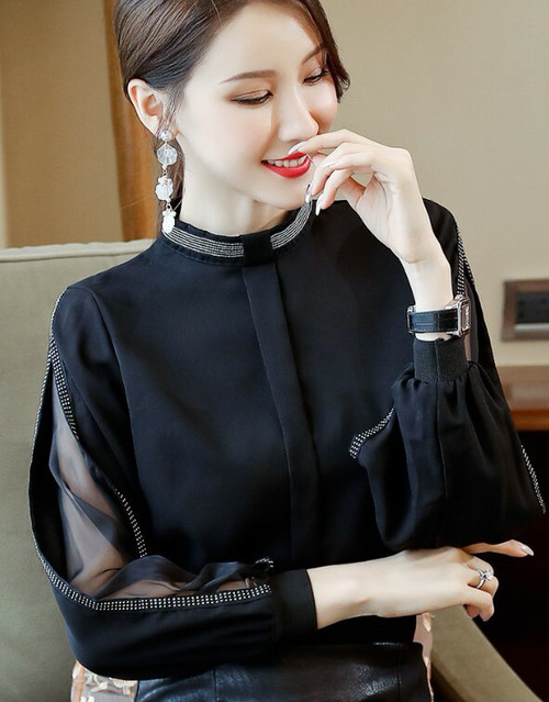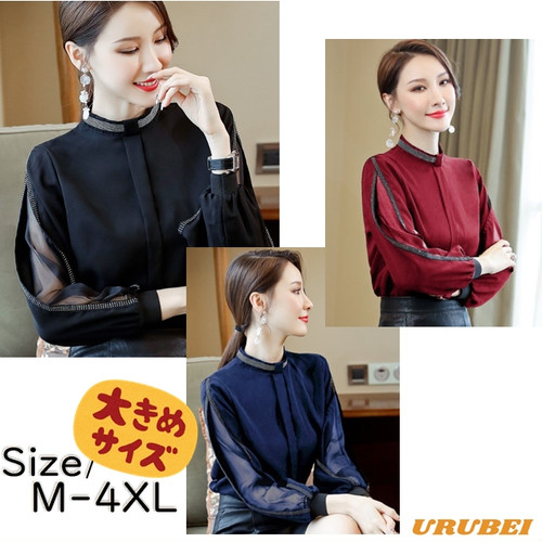 春新作トップスレディース シフォンブラウス キレイめ お呼ばれ デート 上品 長袖 ショルダーカット 透け感 肌見せ ハイネック スタンドカラー ノーカラー シンプル 無地 レディース トップス 春 秋 冬 オフィスカジュアル 普段 30普 かわ大