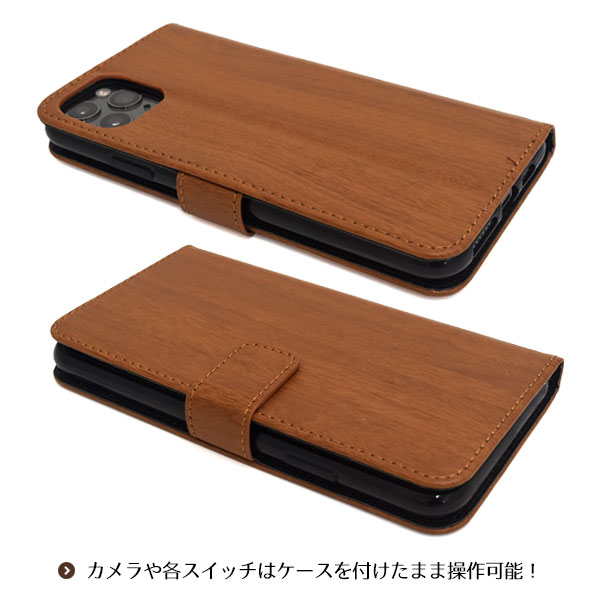 木目デザインがきれいな手帳型ケースです。