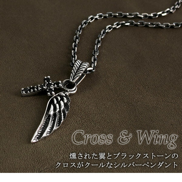 (シルバーアクセサリー/シルバーアクセ/ペンダント/メンズアクセ/ハード/ウィング/羽/十字架)