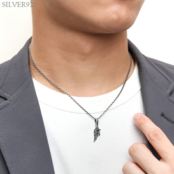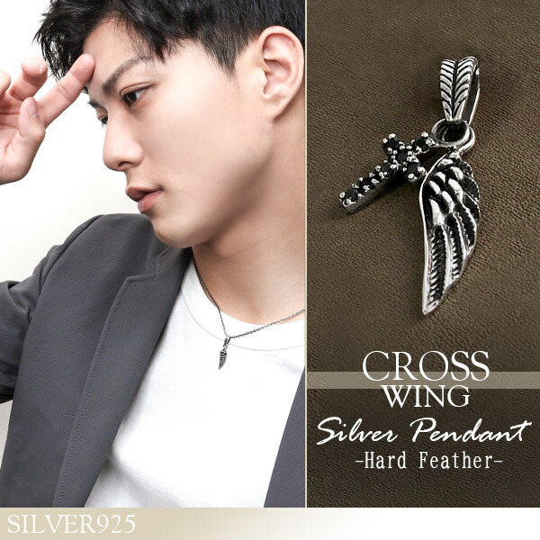 クロス ウイング シルバー ペンダントトップ チェーンなし メンズ ペンダント ネックレス シルバー925 十字架 翼 羽根 ハード 男性用
