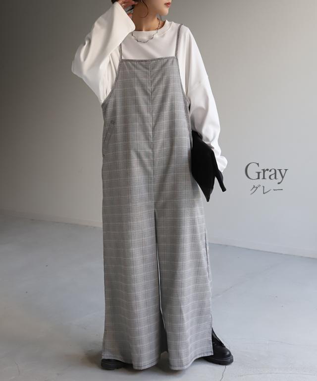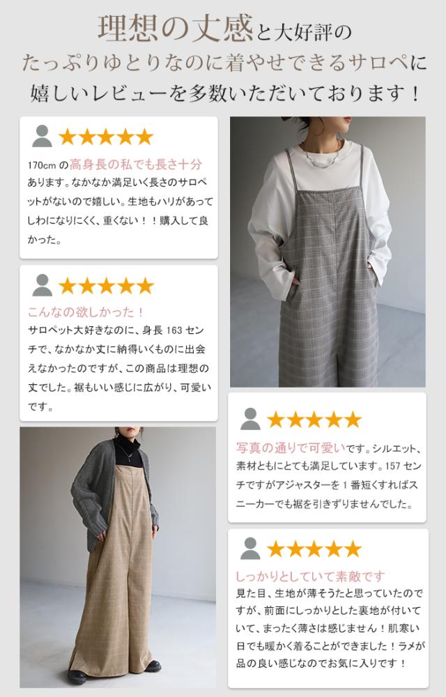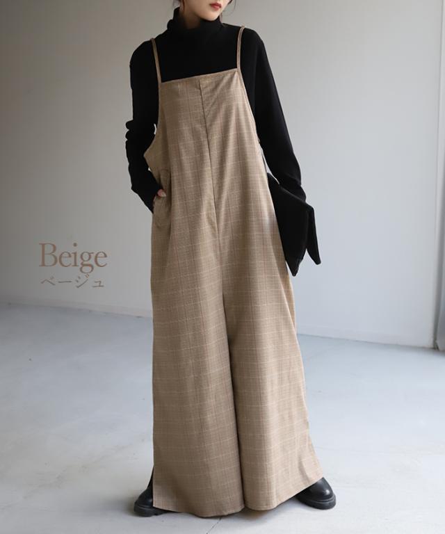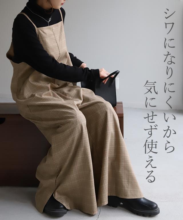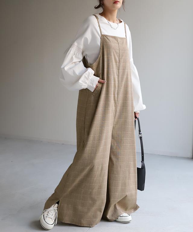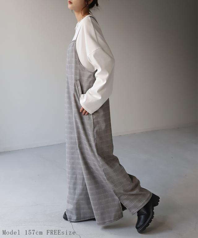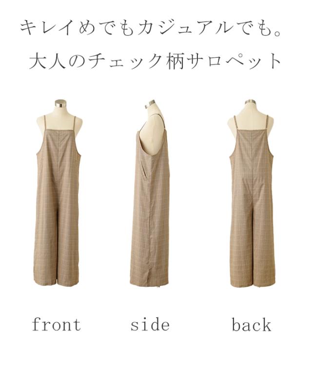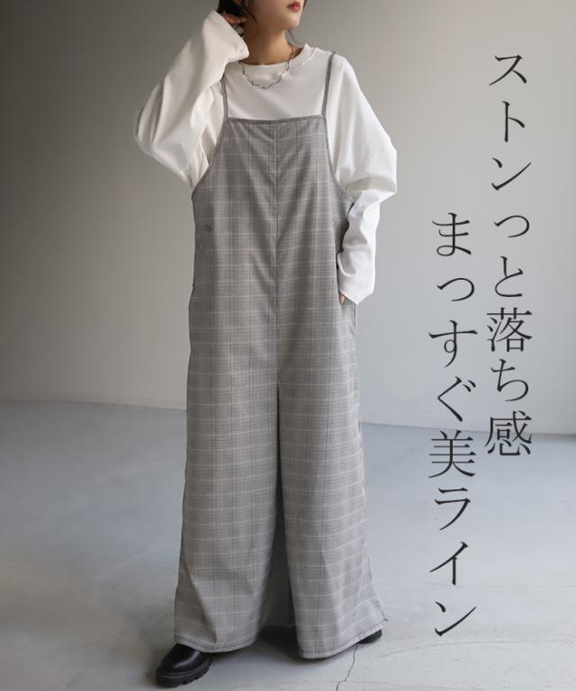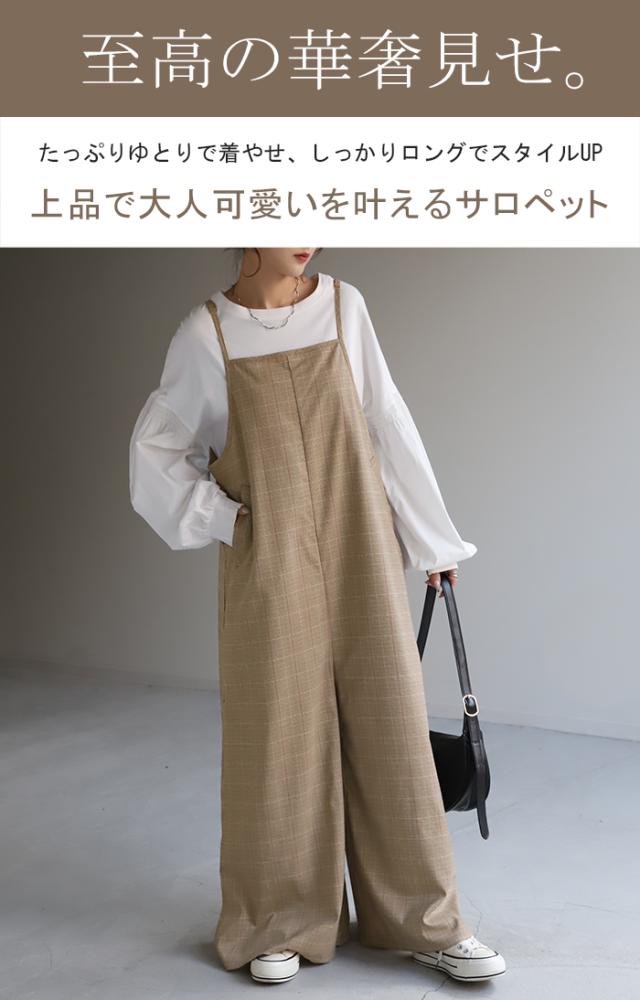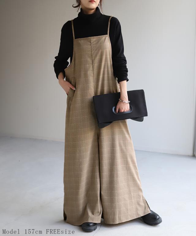 オールインワン レディース サロペット 体型カバー シンプル チェック チェック柄 フリーサイズ サロペ コンビネゾン つなぎ ワイドパンツ きれいめ キャミワンピース ロング パンツ 大きいサイズ 冬 秋 秋新作