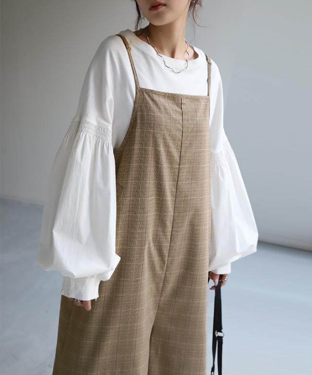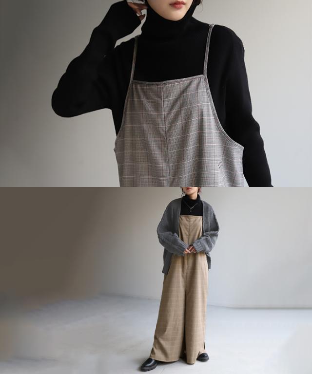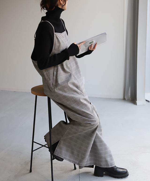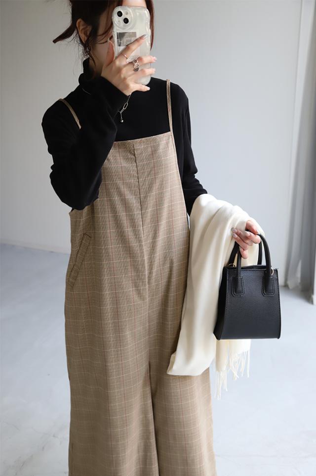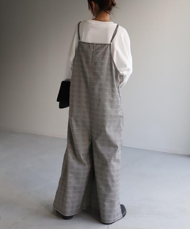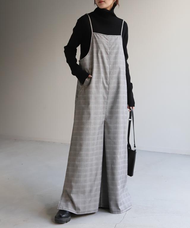 グレンチェック柄のオールインワンサロペット。