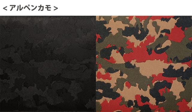AlpenflageまたはPizza camoflageとも呼ばれるスイス軍のオリジナルカモフラージュ柄がモチーフ。木の葉を模したギザギザとしたラインと、明るいカラーが特徴。印象的なレッドは、赤外線から逃れるためとも、紅葉に紛れ込むためともいわれ、アルプス地方の環境にとてもよく馴染むカラーになっている。