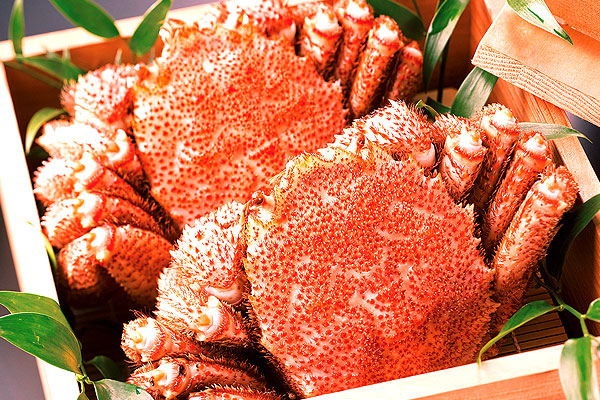どんなに品質の良い毛蟹を使っても、茹でるとせっかくの旨み成分が若干流れ出てしまう上、塩味が安定しないと言われます。しかし、活きた毛蟹を高圧スチームで熱を加えることにより旨み成分は閉じ込められ、「三大蟹の中でもっとも美味しい」と言われる毛蟹ならではの甘みは逃げることはなく、カニ味噌の深い食味も繊維のシットリした食感も失われないのです。均等に塩をまわす独自の技術により塩味も安定しています。