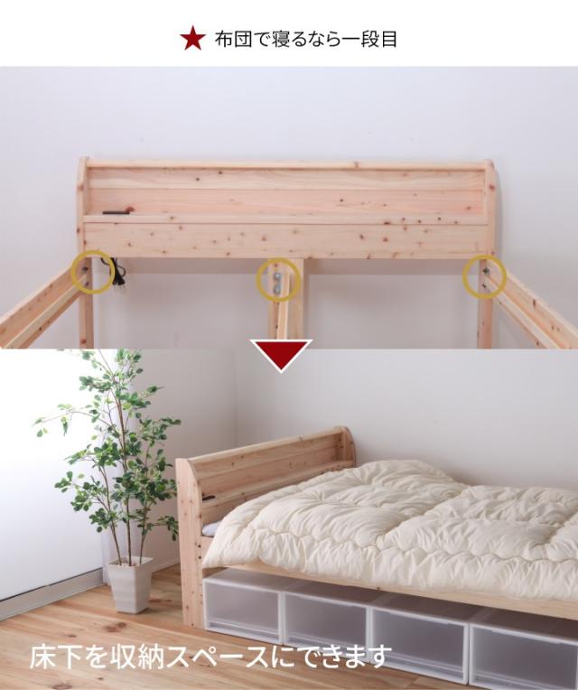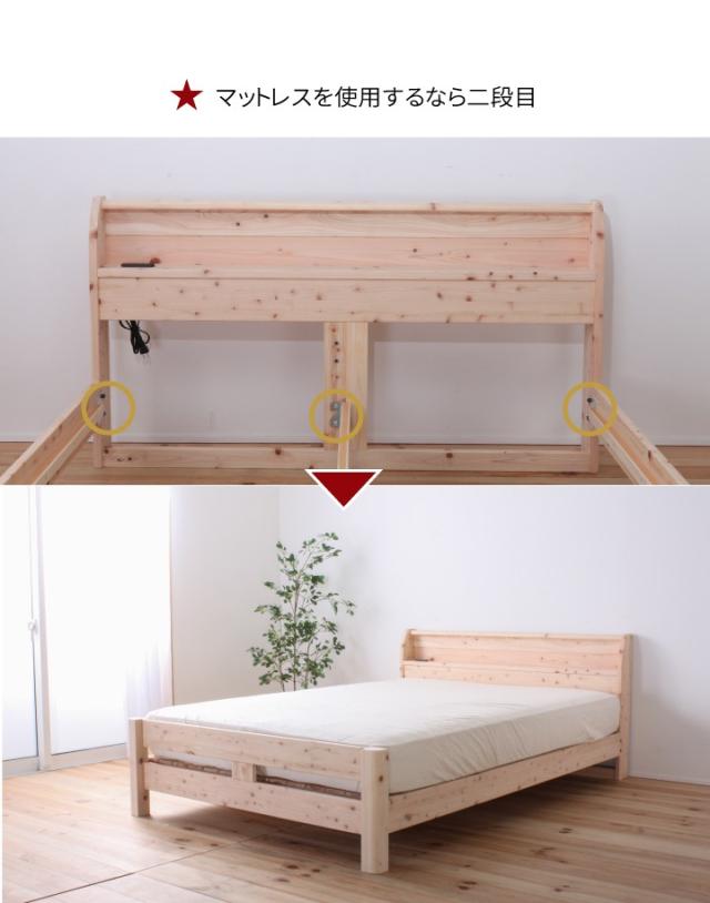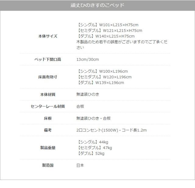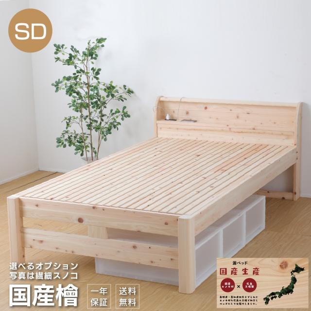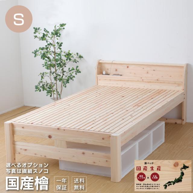 すのこベッド シングル ひのき 頑丈 棚付 島根県産高知四万十産ヒノキのすのこベッド(TCB245-s 7024501)