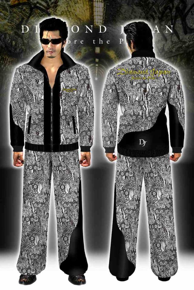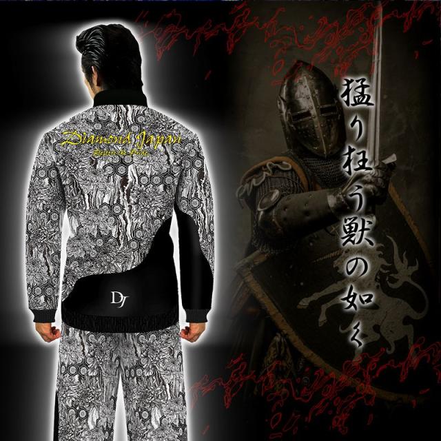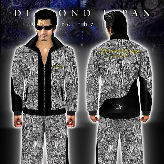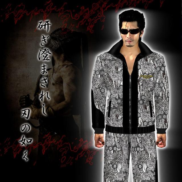 セットアップ ジャージ オラオラ系 メンズ ファッション ヤクザ 長袖 上下 服 刺繍入り 白×黒 ヤンキー オラオラ 悪羅悪羅 オラオラ系 DJ-147 菊総柄 バロック柄 派手 悪党の店 バースジャパン BIRTHJAPAN