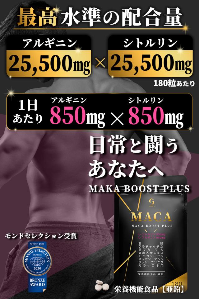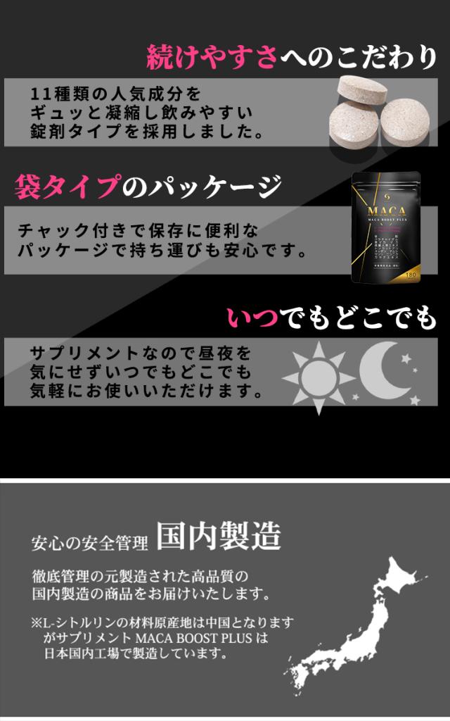 MACA BOOST PLUS シトルリン 25,500mg アルギニン 25,500mg マカ 亜鉛 厳選11種類 180粒 30日分 日本製【栄養機能食品】