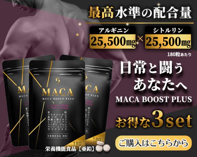 MACA BOOST PLUS シトルリン 25,500mg アルギニン 25,500mg マカ 亜鉛 厳選11種類 180粒 30日分 日本製【栄養機能食品】 (MP)