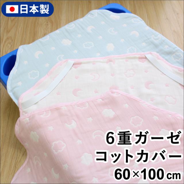 6重ガーゼ お昼寝 コットカバー 日本製 60×100cm 月と雲 ピンク/サックス(ブルー)/ホワイト ガーゼ生地 綿100% 保育園 幼稚園 入園準備 un doudou オリジナル ノンキャラ メール便発送(ポスト投函) NP