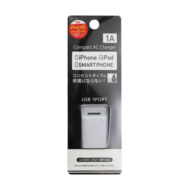 即納 スマートフォン スマホ AC充電器 USBポート1口タイプ キューブ型 1A ホワイト オズマ IACU-90WN