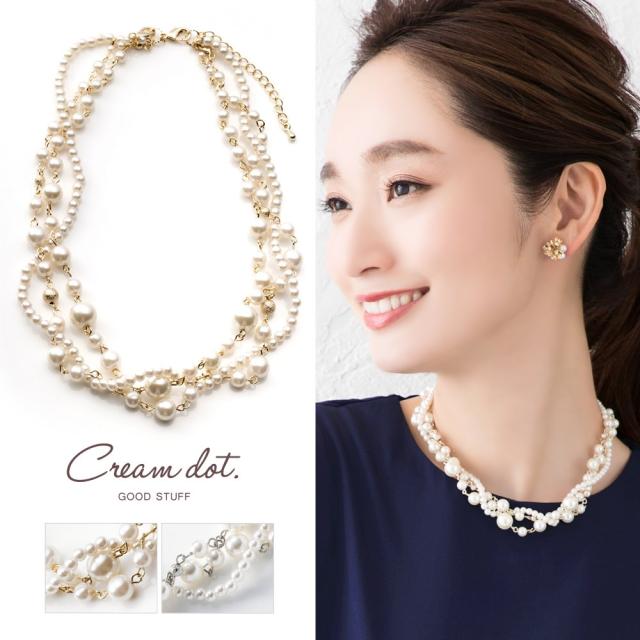 大きさの違うパールをランダムに編みこんだレディライクなパールネックレス。