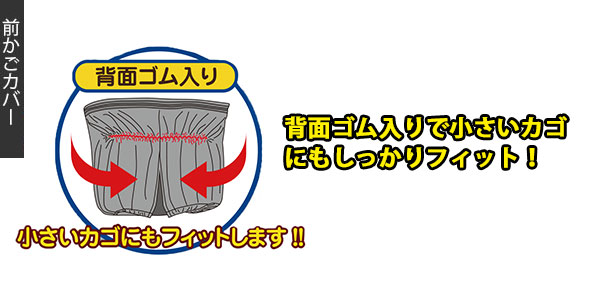 | 注意点 | ※自然光などにより、通常のご使用でも若干の変退色がおこります。 ※汚れは水またはぬるま湯で洗い流してください。 ※もみ洗い等は避けてください。 ※洗剤のご使用はおやめください。 ※火気の近くでのご使用はおやめください。 ※鋭利なもので突いたりひっかいたりしないでください。 ※本製品は完全防水ではありません。 ※サイズより大きなカゴに無理矢理かぶせないでください。破れる危険があります。 ※ひったくり防止や抑止には効果がありますが、安全ではありませんので、貴重品などの管理はご自身にて行ってください。 ※使用上の損失については補償できません。 ※用途以外にはご使用にならないでください。 ※カバーの耐久性は、紫外線の量(特に夏季、炎天下の場合)や、酸性雨などの自然現象及び使用状況により、かなり異なります。 ※カメラやモニターの性質により、画像と実物の色の違いがある場合がございますのでご理解願います。 |