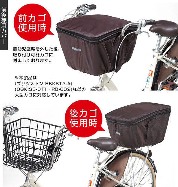 | 商品説明 | ・自転車での通勤時や、お子様の送り迎えの時にも大活躍!大切な荷物を雨やひったくりから守る、2段式自転車カゴ用カバー。前カゴ用カバー(kw245)と前後カゴ兼用カバー(kw767) のお得なセット。 ・荷物が無いときはすっきり!多いときにはたっぷり収納!前カゴ用カバー・前後カゴ兼用カバーともに、ファスナーを外すことで、その日の荷物の量に合わせて2段式に容量アップ!!(ファスナーを半分だけ開いて、“ちょっとアップ”も出来ちゃう。) ・前後兼用カバーは、後ろカゴはもちろん、前幼児座席を外した後に取り付けが出来る、センターバスケットに対応。 ・PUコーティング加工されたはっ水生地を使用。突然雨に降られた時も、荷物が雨に濡れるのを防ぎ、帰宅後にタオルでサッと拭くだけでお手入れも簡単! ・前カゴ用カバー・前後カゴ兼用カバー共に、ダブルファスナー式で前からも後ろからも開閉が可能!ファスナー引手に持ち手紐付きで開閉しやすく、サドルに座ったままの状態でも、後ろから荷物の出し入れが出来てとってもラク♪ ・前カゴカバーには正面に、前後兼用カゴカバーは正面と背面に反射帯付き。背後から走ってくる車のライトをしっかり反射!薄暗い帰宅時間帯も安心して走行できる。 ・お買い物や荷物のさりげない目隠しに活躍するほか、ファスナーでフタをしっかり閉めることで盗難などの抑止効果にも♪ ・前カゴカバーは背面に伸縮ゴム付きなので小さいカゴにもフィットします! |