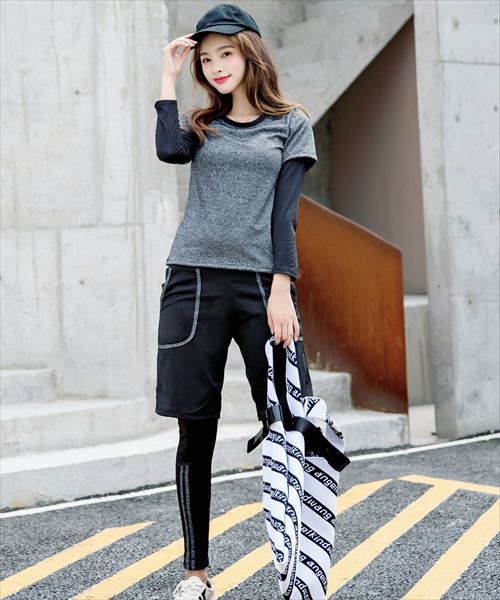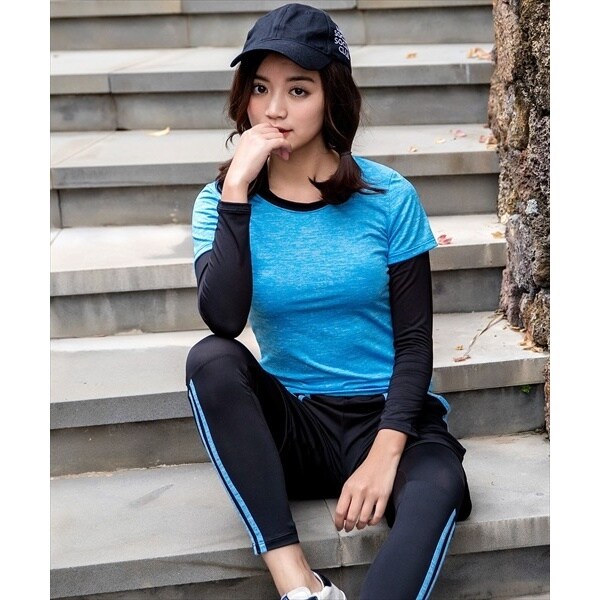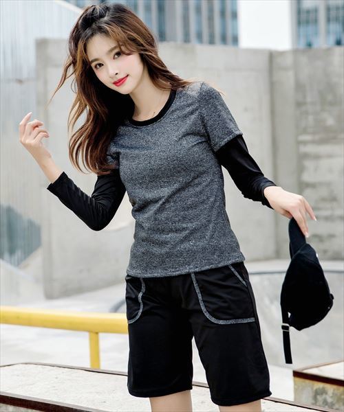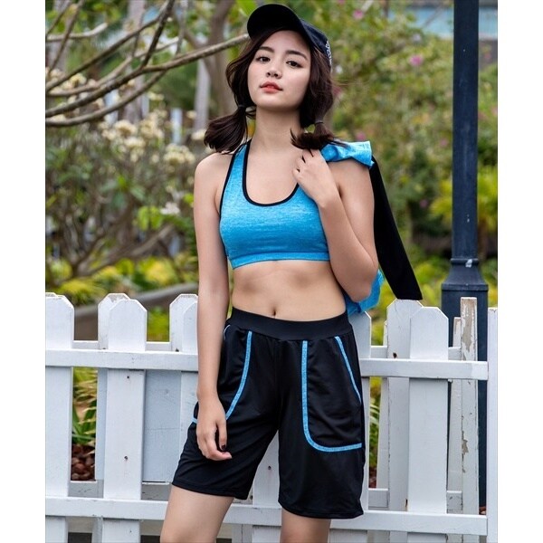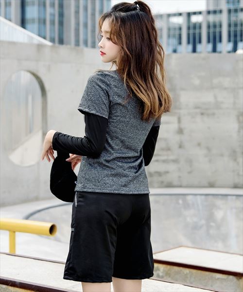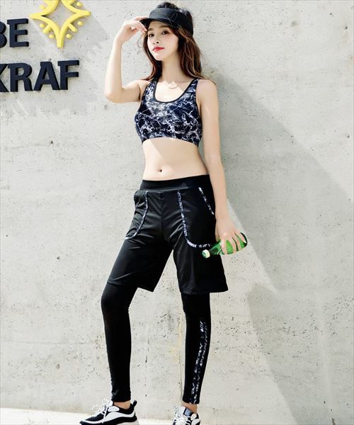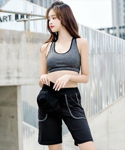 ラッシュガード+レギンス+ブラ+ハーフパンツ 4点セット