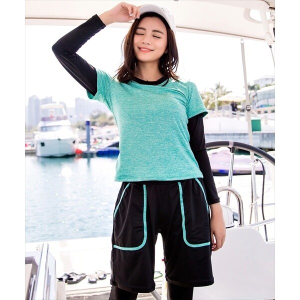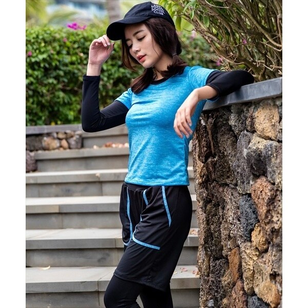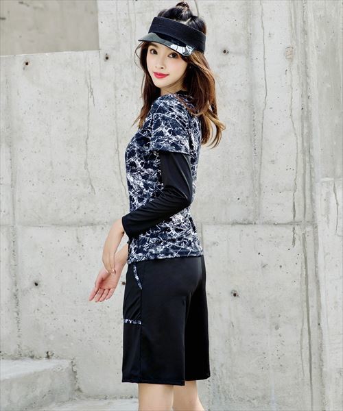 水着 フィットネス バイカラー 長袖4点セットアップ