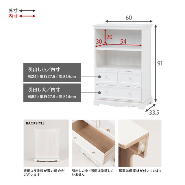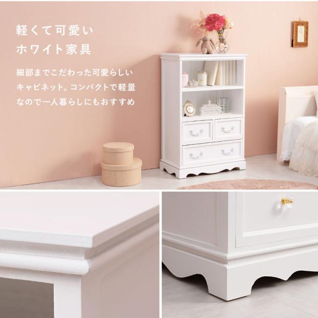 キャビネット 木製 白 幅60 おしゃれ 収納 かわいい 完成品 姫系 可愛い 引出し アンティーク キラ キャビネット 木製 おしゃれ 白 かわいい 完成品 60 キラ