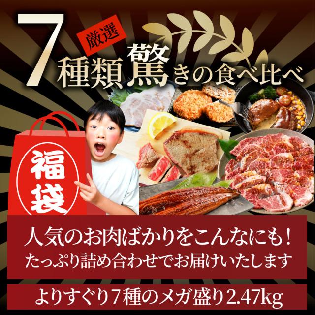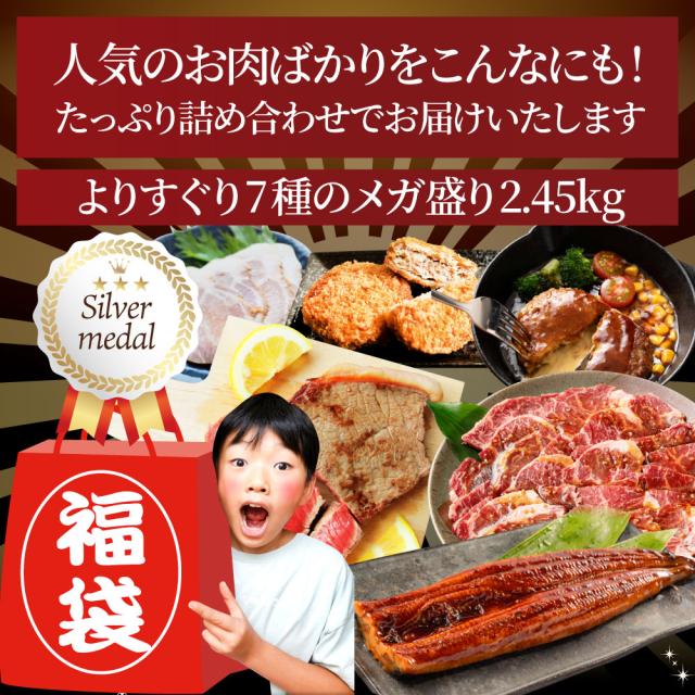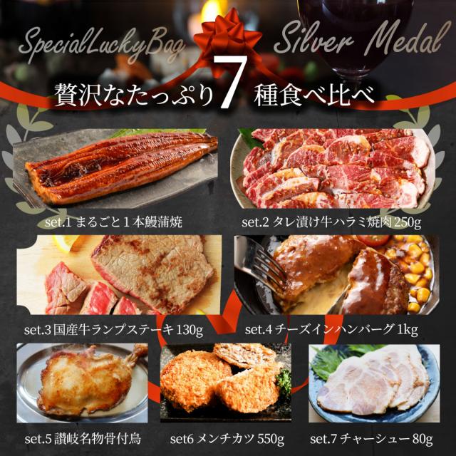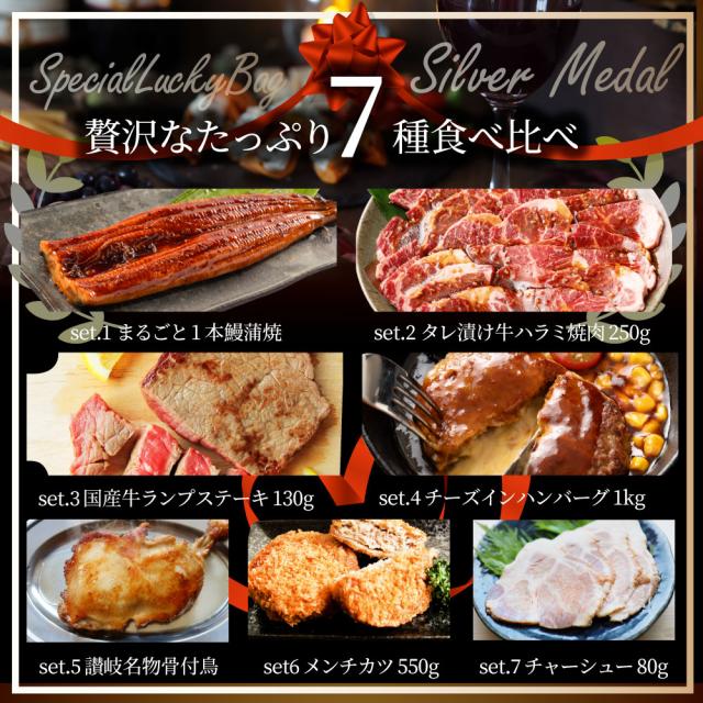 2025 福袋年 肉 牛肉 食品 国産牛ステーキ 焼肉 うなぎ1本入り ハンバーグ《銀メダル》7種食べ比べ 贅沢セット ギフト プレゼント プレゼント 通販 お取り寄せ セット 送料無料 *当日発送対象 お肉の しゃぶまる
