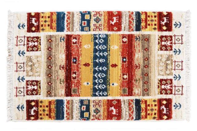 ラグの名産地トルコで作られた、まるで手織り絨毯の様なエスニックなデザインの玄関マットです。ギャッベ模様特有の遊牧民の素朴であたたかなモチーフが、お部屋を温もりのある空間に演出します。