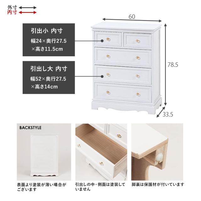 チェスト 木製 おしゃれ 白 かわいい 完成品 可愛い 収納 60 引出し 姫系 アンティーク 4段 クリスタル キラ チェスト 木製 おしゃれ 白 かわいい 完成品 60 キラ