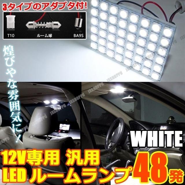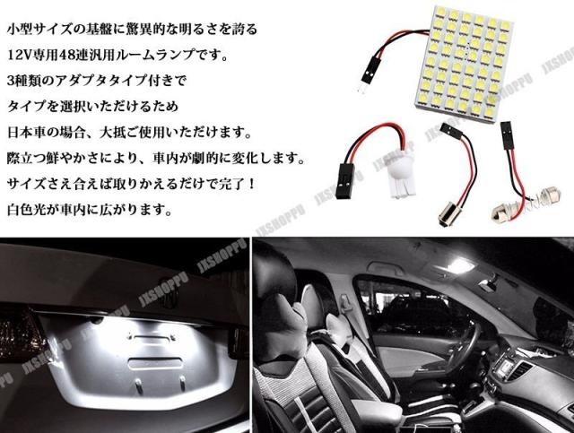 アダプタ3種付 プレート型 LED 48発搭載 爆光 580LM ルームランプ ホワイト 白 12V 58×43mm 車内灯 T10 BA9S フェストン 汎用 送料無料