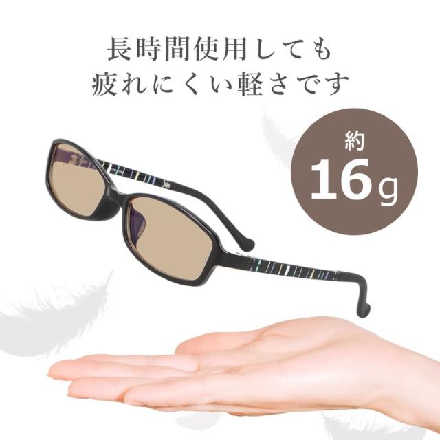 素材にも軽量なTR90を使用した長時間使用しても疲れにくく、使い慣れていない方にも優しい度無しのPC眼鏡となっています。