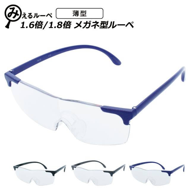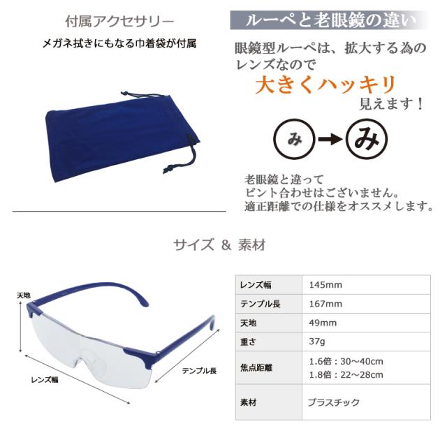 メガネ ルーペ 眼鏡 メガネ型ルーペ おしゃれ 薄型 倍率 1.6倍 / 1.8倍 拡大鏡 シニアグラス 収納袋付き オーバーグラス メガネルーペ 携帯 軽量 幅広 大きめ 敬老の日 ギフト プレゼント