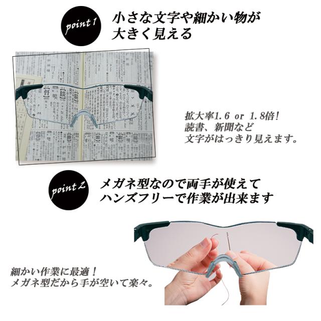 拡大鏡の倍率も1.6倍と1.8倍からご購入できますので、用途に合わせた最適な倍率を選択いただけます。