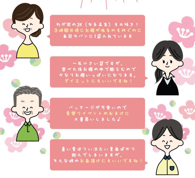 - 小さくて食べやすいです。梅味がさっぱりしてて美味しいので近いうちに旅行に行く時に持って行こうと思います。なくなる前にまた注文します。