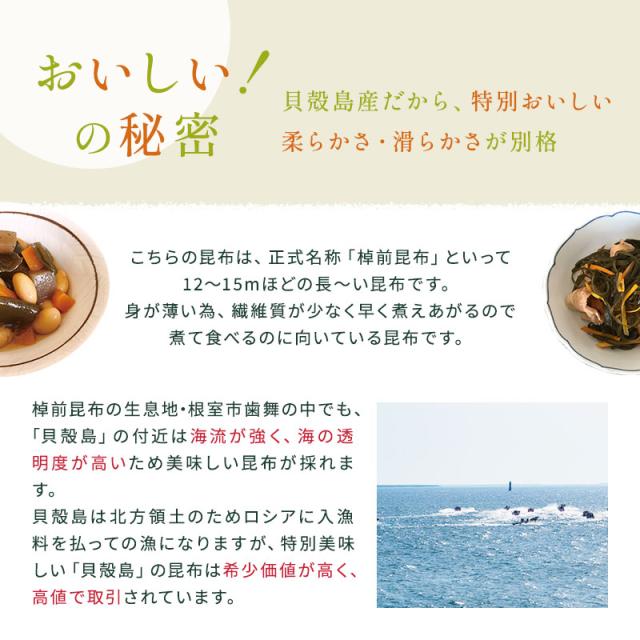 煮崩れしにくく滑らかな食感で、とても柔らかい昆布です。