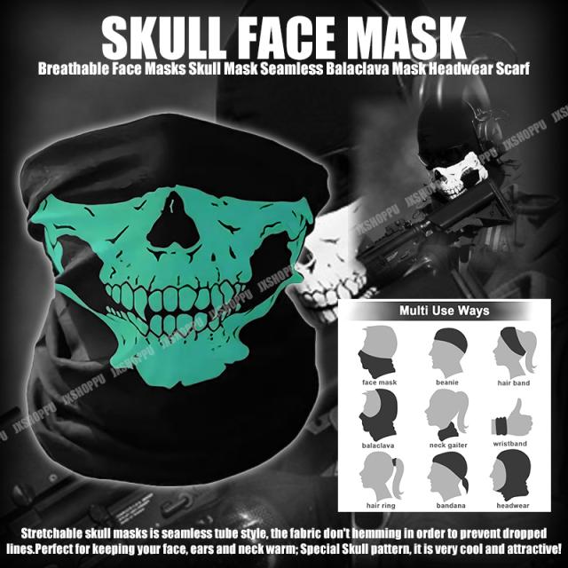 スカル フェイス マスク [グリーン] 超薄手 ネックウォーマー ドクロ 骸骨 カバー フェイスマスク スノボ サバゲー ツーリング 送料無料 サバイバルゲーム アウトドア レジャー コスプレ 衣装 小物 ほね どくろ 顔 頭 顔面 幽霊 おばけ お化け ハロウィン ゲーム 怖い 化け物