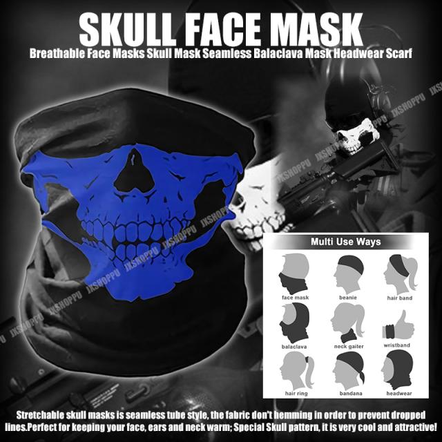 スカル フェイス マスク [ ブルー ] 超薄手 ネックウォーマー ドクロ 骸骨 カバー フェイスマスク スノボ サバゲー ツーリング 送料無料 サバイバルゲーム アウトドア レジャー コスプレ 衣装 小物 ほね どくろ 顔 頭 顔面 幽霊 おばけ お化け ハロウィン ゲーム 怖い 化け物